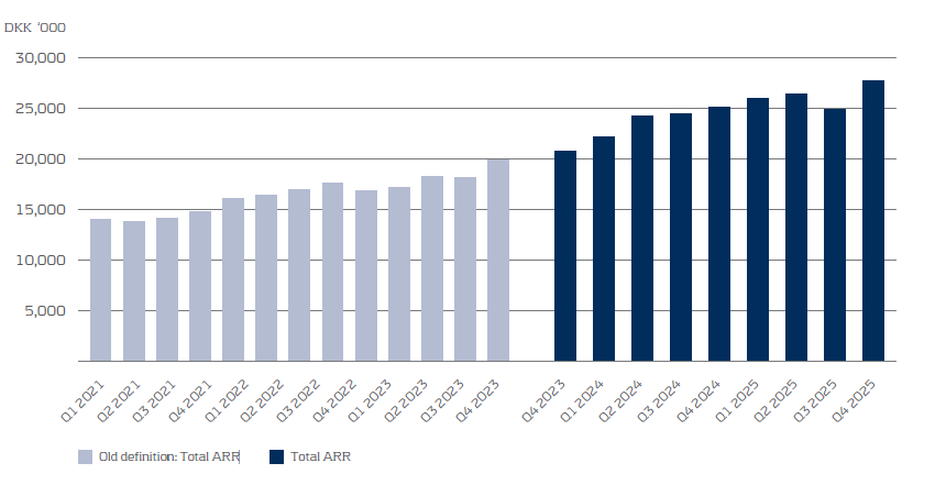 Risk Intelligence System license agreements provide access to the System, and are paid annually, in advance. The license agreements are priced according to number of users and modules included. With a historic renewal rate of 98-99% (churn of 1-2%), each new license improves future cash flow with an average recurring revenue value of DKK 1.5 million (LTV).