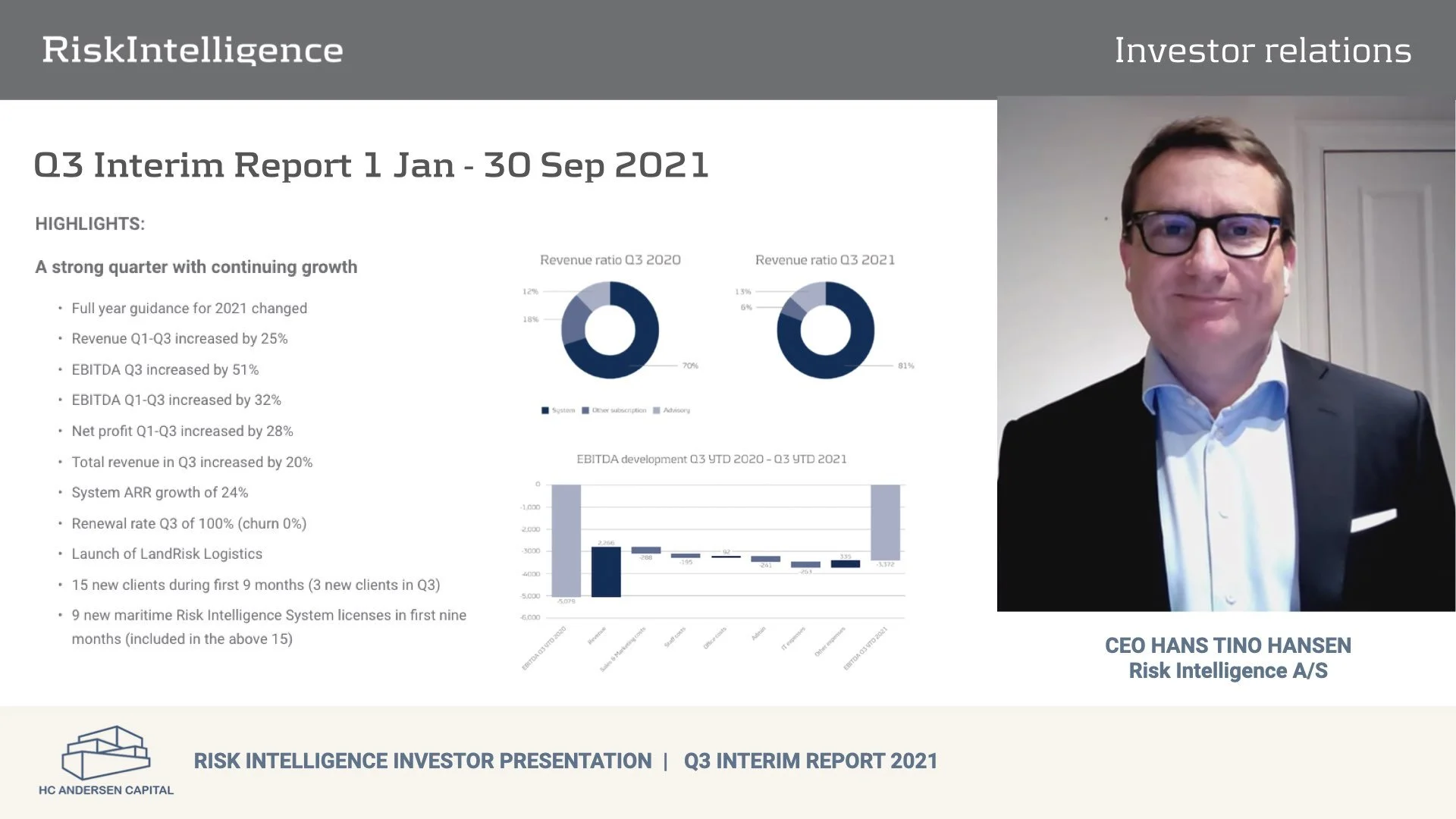 [In Danish] Video recording of interview by HC Andersen Capital with Hans Tino Hansen, CEO of Risk Intelligence A/S, and CFO Jens Krøis on the Q2 Interim Report 2021.