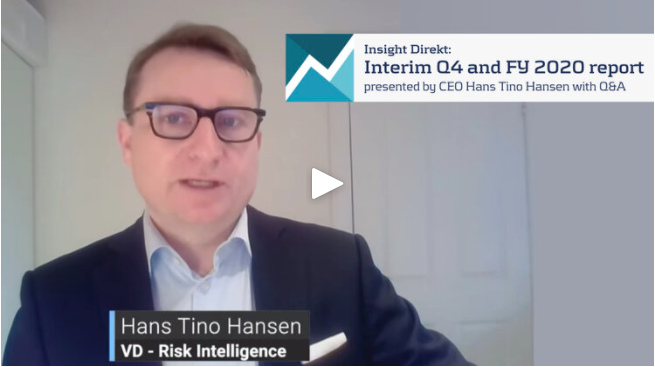 Video presentation in English of the Risk Intelligence Q1 2021 interim financial report. CEO Hans Tino Hansen presenting live on the Direkt Studios financial news channel.